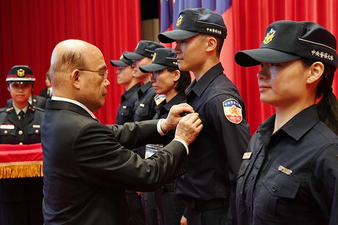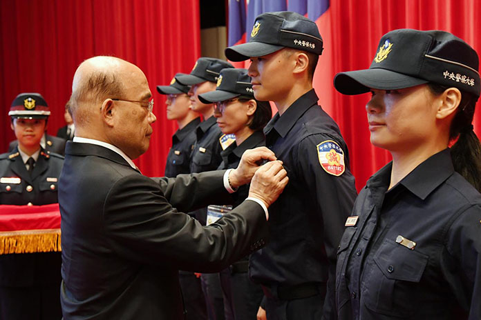 蘇院長強調,警察之所以有力量,除了國人的支持及警察同仁的努力外,國家也會從制度、政策及資源面給予支持。例如警政署長曾提出,酒店或夜店的鬧事者只能依「社會秩序維護法」裁罰,他也立刻請內政部長修改「刑法」相關規定;而員警在高速公路執勤受傷,他立刻動用第二預備金,租用大型貨車加裝緩撞設備等,增加國道公路警察執勤安全。