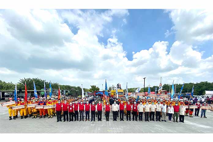 今日演練動員本島19縣市、13個中央部會署、5大電信業者、各民間團體公司,共1,300餘人、174車、C130運輸機及空勤直升機各1架次,完整展現了臺灣防救災能力。