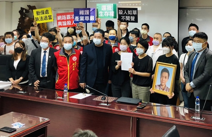 新北土城一寵物店梁姓老闆上週輕生,家屬今(13)日指出,梁老闆是為救自己售出加非貓頻染病,施打未經許可的治療用藥物,民進黨議員戴瑋姍接獲多起陳情,新北動保處為此開罰,讓梁老闆飽受外界批評,才決心以死明志,家屬今與寵物同業公會公開陳訴冤情,要討個公道。