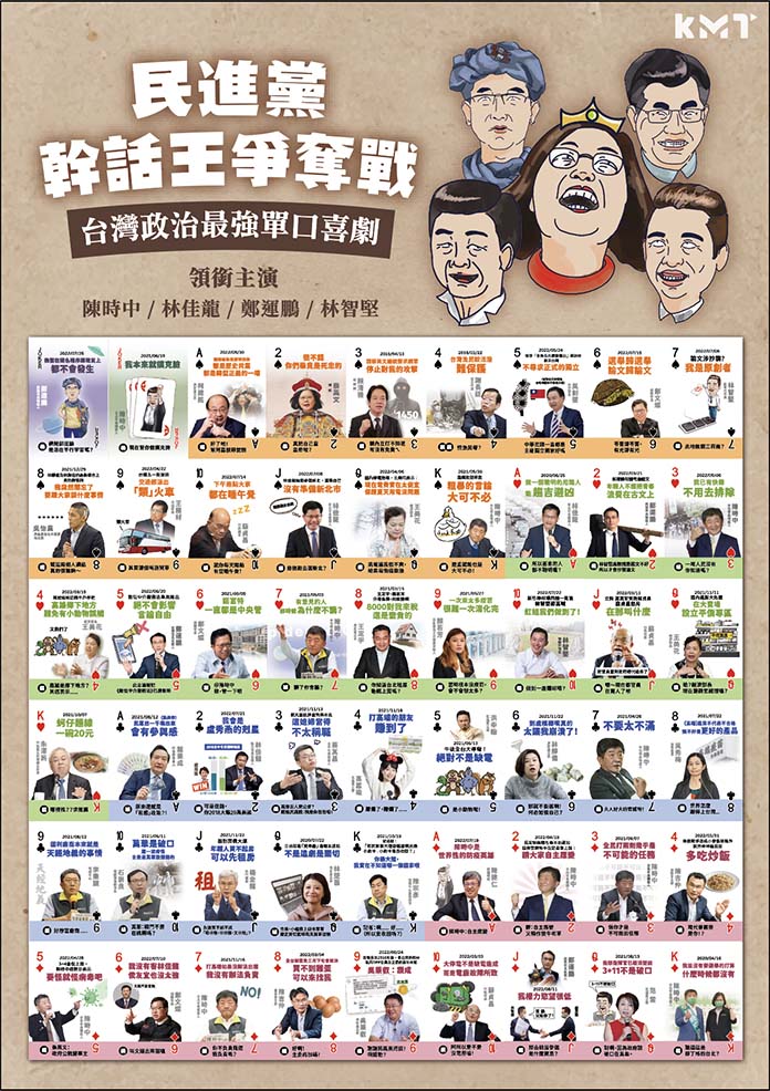 國民黨推出「幹話王撲克牌3.0」陳時中金句連發占10張