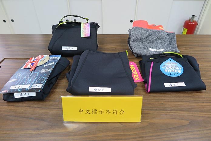 游開雄指出,此5件不符合情形包括未標示進口商、生產國別等資訊;纖維成分名稱未以中文學名標示;本體與外包裝標示不一致(纖維成分名稱及洗燙處理圖示)。