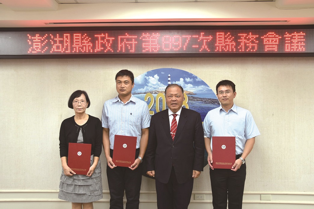 長陳光復日前在任內最後一次縣務會議中,頒獎表揚榮獲「106學年度推動健康促進績優學校」的石泉國小、七美國中、湖西國小榮獲,肯定優異表現,頒發獎狀。