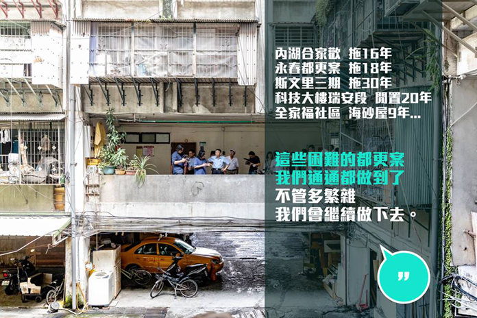 北市府更新處昨(25)日新聞稿表示,大安區臥龍街全家福社區海砂屋都更案,於6月25日核定發布實施。