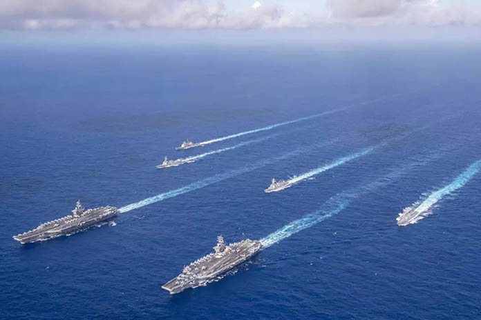 美國的兩艘巨型海洋航母尼米茲及羅斯福號,於2021年2月初在深具爭議的海域舉行聯合軍演,同時還伴隨著強大的艦隊群,以展示拜登新政府的決心,這些都被臨近各國菲律賓、越南、馬來西亞及印度尼西亞看在眼裡;這些臨近該海域的各國,極力抗議中國對此海域的主權宣稱。在美國華盛頓《國際戰略研究中心CSIS》的專家格拉瑟指出:我們將會看到美國,針對中國在南中國海的活動採取更強有力的反擊行動。