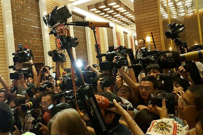 前總統陳水扁昨日晚間首度出席凱達格蘭餐會,媒體和聲援民眾一擁而上造成現場混亂。這是陳水扁保外就醫後,頭一次出席由凱達格蘭基金會所主辦的餐會活動,連日來引發社會關注。