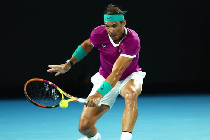 班牙名將納達爾1月28日在澳洲網球公開賽4強戰,以6比3、6比2、3比6、6比3,力退義大利新生代好手貝雷蒂尼,生涯第6度闖進澳網男單決賽,離破紀錄第21座大滿貫金杯,僅一步之遙。