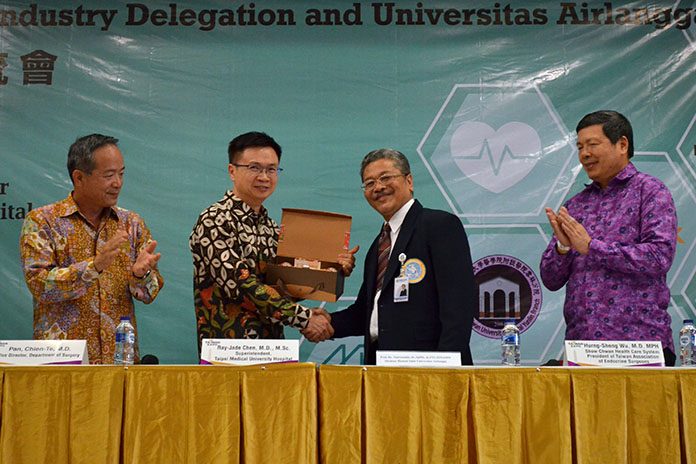 為加強向印尼推廣臺灣醫療產業,在當地建立臺灣醫療品牌及形象,貿協黃志芳董事長今(26)日率臺灣醫療產業團,包括臺北醫學大學附設醫院陳瑞杰院長、秀傳遠距微創手術訓練中心吳鴻昇名譽院長、臺大醫院雲林分院外科部盤建德副主任、敏成股份有限公司古思明董事長、寶健科技股份有限公司徐水總經理、承鋆生醫股份有限公司劉浩承行銷業務部經理等團員,到印尼泗水進行醫衛交流並親自見證醫療團員與愛爾朗加醫學大學附設醫院(Universitas Airlangga Hospital)簽署合作備忘錄,未來將透過醫護人員來臺代訓、交流臺灣醫院管理經驗、建置醫療智慧系統、醫材與設備引進印尼,來共同守護印尼民眾的健康。