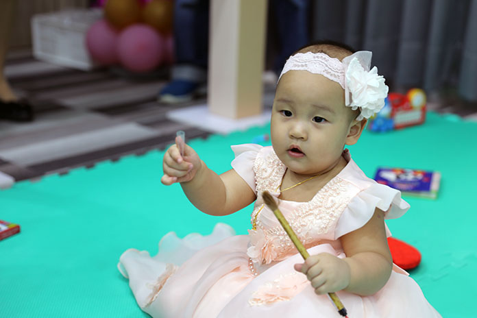 Venus在抓周儀式中,首先抓起代表聰明的蔥,接著對尺也把玩了許久,據說這表示將成為設計師或建築師,Venus最後爬到毛筆處,也端詳許久,表示她未來也有可能成為文人或作家。