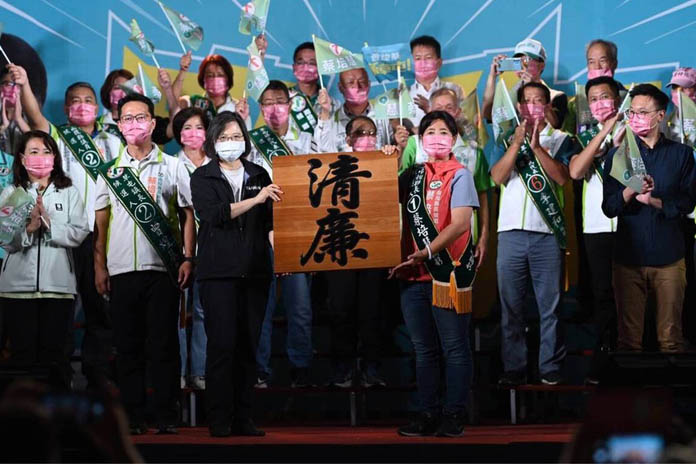 身兼民進黨主席的總統蔡英文11月22日輔選民進黨南投縣長候選人蔡培慧指出,蔡培慧對手身邊有暴力、黑金背景的人,縣長應選擇清白、清廉、有能力的人,不二人選就是蔡培慧。