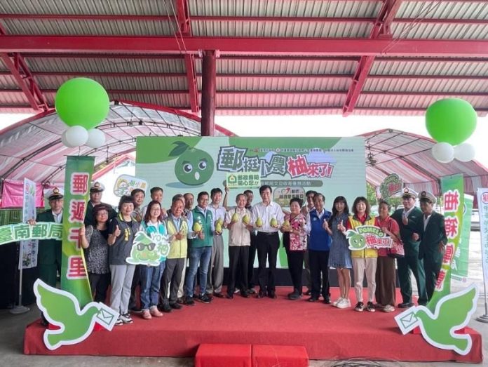 【勁報記者杜忠聰/臺南報導】臺南郵局與臺南市政府於112年9月2日(星期六)上午10時假麻豆區謝厝寮紀安宮共同舉辦「臺南郵局郵挺小農 柚來了!」記者會,中華郵政公司吳宏謀董事長、郭國文立委、臺南市政府農業局李建裕局長、麻豆區公所柳世雄區長、麻豆區農會孫慈敏總幹事、陳秋宏議員、尤榮智議員、吳通龍議員等各級民意代表及在地合作小農皆蒞臨盛會。
