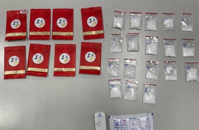 【勁報記者于郁金/臺南報導】余姓男子(25歲、中西區人)於1日凌晨3時40分駕車行經民生路與臨安路口時,因車行速度過快且轉彎未減速,為帶班巡邏經過之第二分局海安派出所所長陳柏文攔下實施勸導及盤檢;於盤檢過程於其身上衣物及車內聞到濃厚K他命毒味,續發現副駕駛座放有1只黑色提包,經其配合打開發現內放有8包毒品咖啡包(重34.6公克);後續又在駕駛座下方發現藏有1只黑色網袋,內又放有18包K他命 (重50公克);經員警將其帶回調查並實施毒品檢驗呈現第三級毒品陽性反應,全案調查後將其依違反毒品危害防止條例調查送辦,並將擴大追查毒品來源。