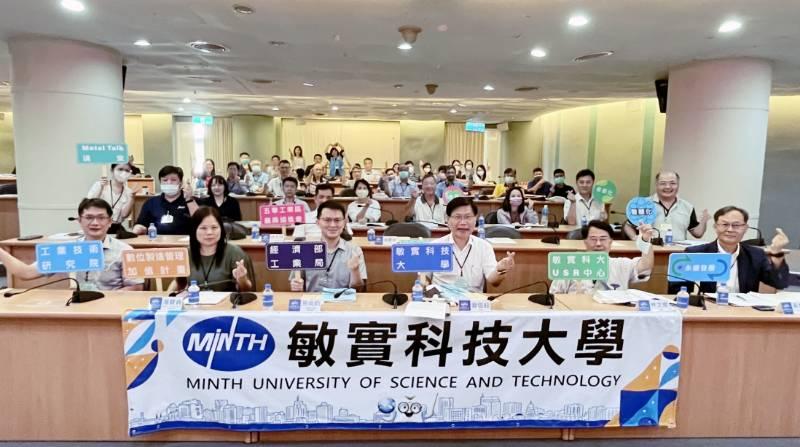 ▲敏實科大與經濟部工業局「數位製造管理加值計畫」於今日辦理「ESG 淨零升級轉型講座」,敏實科大曾信超校長(前排右3)和現場貴賓合影。(圖/敏實科大提供)