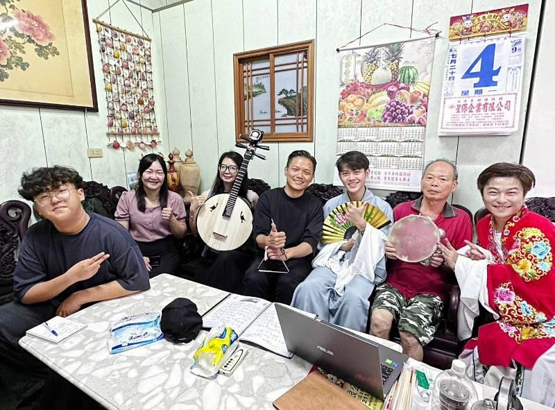 圖說:社會局媒合花雅戲曲藝術教育推廣協會及戲曲學院師生專程上山為獨居長輩許阿伯(右2)彈唱戲曲 以解孤寂。
