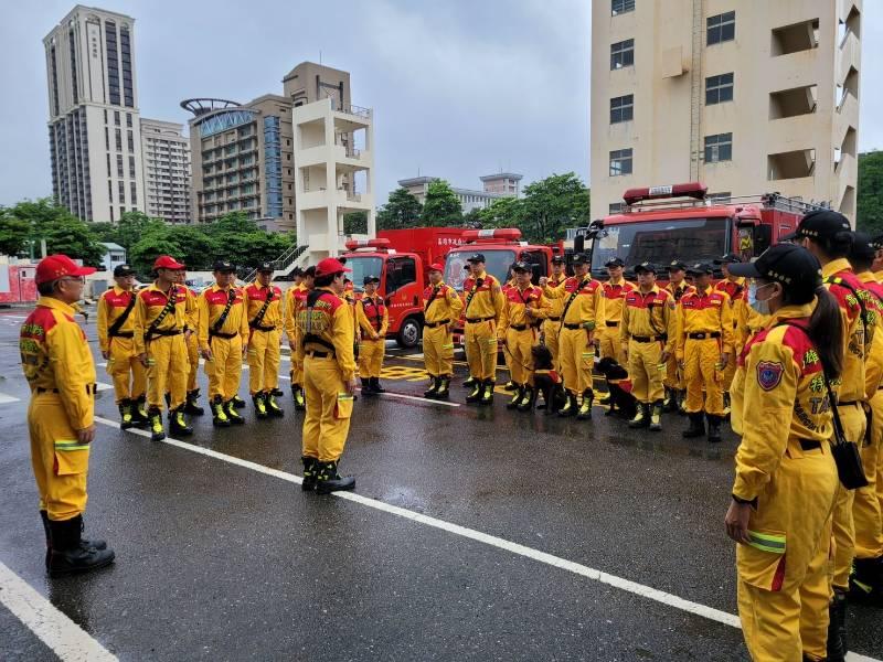 目前整備完畢之高雄市消防局特種搜救隊計有45名人員(除搜救人員外,另含1名獸醫師、2名醫師、2名護理師、1名土木技師)、2隻搜救犬及裝備8.4噸(除各式救災裝備外,另含聲納探測、破壞器材、糧食等),後續將依消防署統一指示,隨時可出動前往災區。
