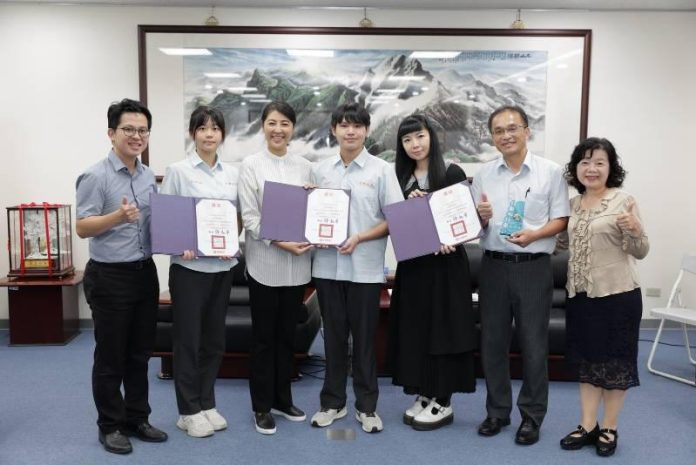 【勁報記者何秀菁/南投報導】國立中興高中學生黃彥甄、張書維由李欣珮老師指導,在第63屆全國科學展覽會以「衛星影像分析-集集攔河堰水體計算」為主題,榮獲高中組地球與行星科學科第一名,11日上午在校長陳漢銘陪同下,接受縣長許淑華頒獎表揚。