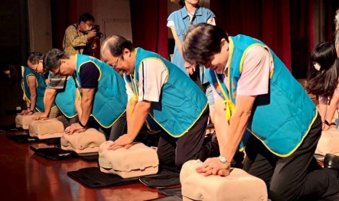 中華醫大表示,今年入學新生有近2200人,為展現學校培育醫事健康專業人才的特色,循往例每位新生必須通過CPR(心肺復甦術)和AED(自動體外心臟去顫器)急救操作大考驗;2千多位新生分成4個梯次,在校長孫逸民、主秘洪明權、教務長張耀宗、入學服務處長姜泰安、研發長殷立德及學務長王素真、護理學院院長謝政蓉等師長帶領下,集體依照急救口訣「叫、叫、C、A、B、D」口令,完成CPR和AED急救正確操作。