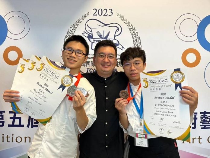 【勁報記者于郁金/臺南報導】為校爭光!嘉南藥理大學餐旅管理系西廚培訓隊再度奪獎為校爭光,繼5月份的泰國終極廚師挑戰賽(TUCC),曾楷勛老師與賴建君同學聯手勇奪5銅牌2佳作後,賴建君同學在2023年TCAC臺灣國際廚藝美食挑戰賽又有表現傑出,奪得經典義大利麵銅牌;而初次參加比賽的陳星昊同學更是拿下西式主菜海鮮類銅牌、牛肉類銅牌、家禽類佳作,讓帶隊曾楷勛老師,感到與有榮焉十分欣慰。