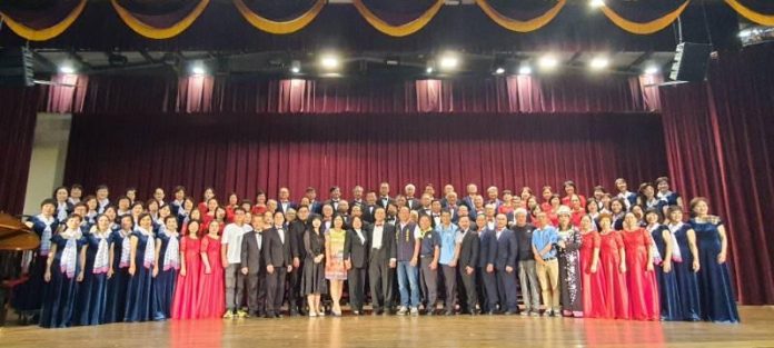 【勁報記者于郁金/金門報導】為紀念823戰役65週年及慶祝93軍人節,復興崗校友會合唱團與金門合唱團,9月10日晚間假金城國中藝文活動中心,辦理金門禮讚公演活動,並邀請地區榮民眷屬代表及社會大眾共襄盛舉,表演曲目有《龍的傳人》、《城裡的月光》、《臺北的天空》等膾炙人口歌曲,期望藉由這場音樂饗宴,紀念823戰役並向曾經服務軍旅榮民弟兄致上敬意,公演活動在文化局陳國興副局長致詞後正式展開。