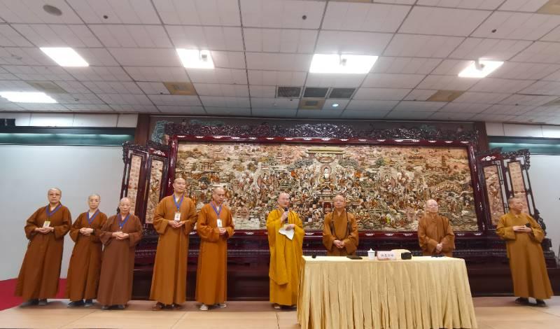 圖說:本性法師(右四)應佛光山方丈心保大和尚(右三)之邀,於2023佛光山海內外徒眾講習會上講話。(上趣創意延展有限公司提供)
