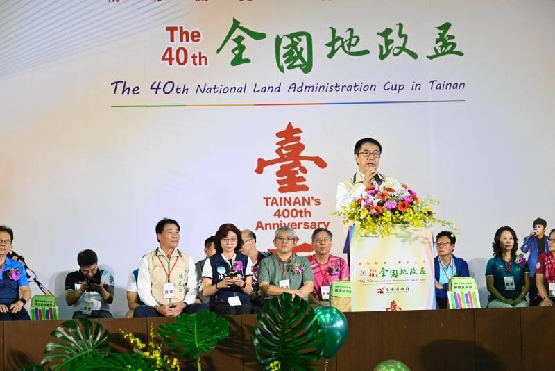 市長黃偉哲表示,很榮幸今年由臺南市政府擔任全國地政盃活動主辦單位,邀請全國各地地政相關人士齊聚臺南,這也是自民國86年第18屆後,時隔20多年,臺南市政府第2次次負責辦理全國地政盃,今年競賽共將舉辦2天,包含桌球、羽球、慢速壘球、籃球、趣味競賽、歌唱比賽等6大主題,本次活動競賽場地範圍包含崑山科技大學、臺南市立桌球館、羽球館、永華國民運動中心及仁義、春風與中洲棒壘球場等臺南市重要活動賽館,這些場域也剛好都是我們這幾年積極投入建設地方,我們透過現代共融式的思維辦理建設與更新,讓老城區注入新風貌,讓這些地方與城市人民一同進步,建議大家可以多多利用比賽空檔,到周邊走走,細細品味府城的風華與魅力。