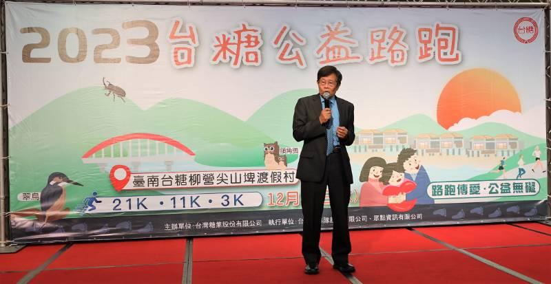 台糖董事長楊明州表示,台糖舉辦公益路跑已邁入第8屆,今年循例邀請公益團體共同參與,讓民眾不只跑步顧健康,還能與台糖一起攜手做公益、關懷助弱勢;本次路跑選在尖山埤渡假村舉行,渡假村不僅有豐富淺山生態、靜謐水庫景緻,是一處能讓跑者享受運動、放鬆身心世外桃源。
