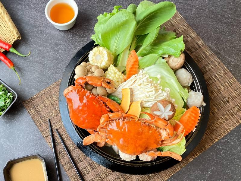 飯店另於10月1日至11月30日在一樓品日料推出紅蟳鍋物,除了原本的頂級肉片、節令時蔬吃到飽外,只要加價480元(須另加一成服務費)就可以升級品嘗兩隻鮮美紅蟳。將鮮甜紅蟳、蝦子及鯛魚片、頂級牛肉與特級豬肉片等各式海陸食材逐一放入鍋中,大海鮮味與湯底完美交融,在秋冬時節絕對能滿足暖胃暖身需求。品嘗一年一度才有的秋蟹美味,饕客千萬別錯過。