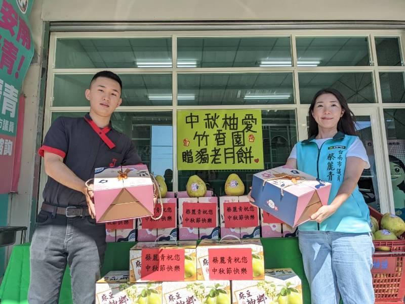 【勁報記者杜忠聰/臺南報導】中秋節將至,為使弱勢家庭也能溫暖過節,市議員蔡麗青攜手愛心企業,發起認購月餅及柚子等中秋節物資,連鎖餐廳竹香園甕仔雞率先認購200盒月餅,太穩建設有限公司認購一千斤柚子,即日起將由蔡麗青議員服務處一一送到獨居老人的手中,讓大家能夠開心過節。