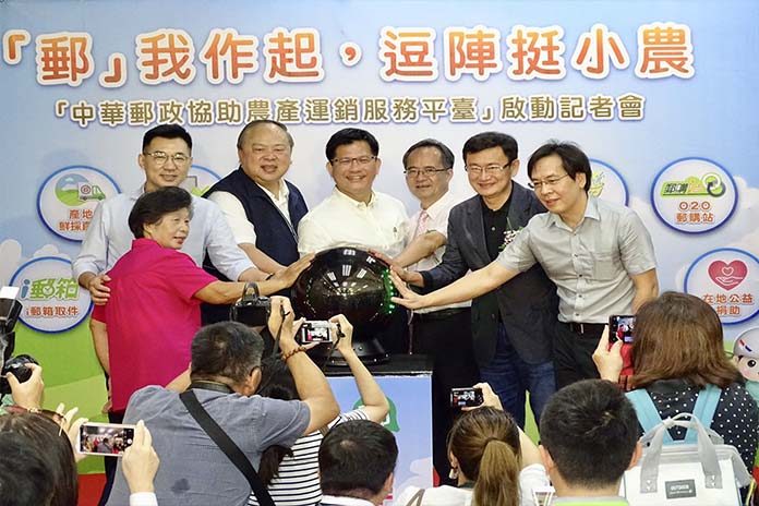 中華郵政今舉辦「『郵』我作起,逗陣挺小農」記者會,林佳龍共同等人啟動「協助臺灣農產運銷服務平臺」。