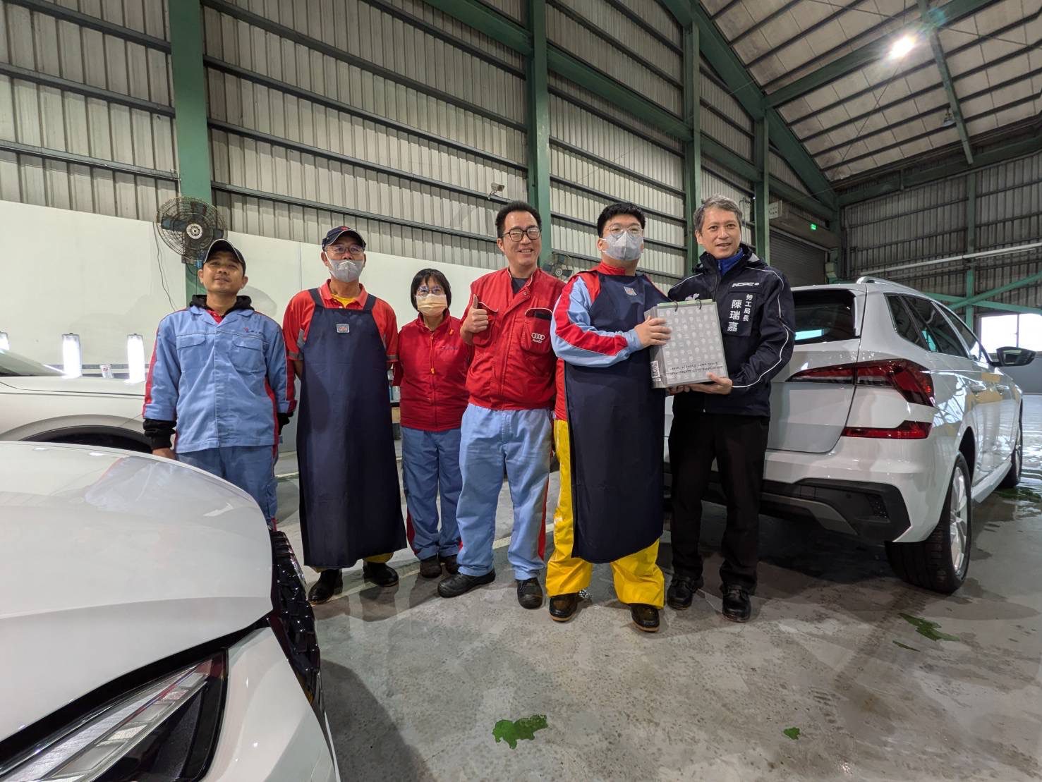 隨後陳瑞嘉轉往汽車進出口業務的東立物流,在董事長施皇吉的帶領下,逐站瞭解清洗、除膠、裝配、檢修等作業情形,並由勞檢處同仁檢視機械設備的安全防護設備,以及人員、機具動線管理等預防措施。目前東立物流負責國內相當高比例的進口車,未來還會承租南碼頭新廠館,陳局長於巡視期間一樣提醒勞資雙方注意現場安全管理,務必落實現場防護工作。