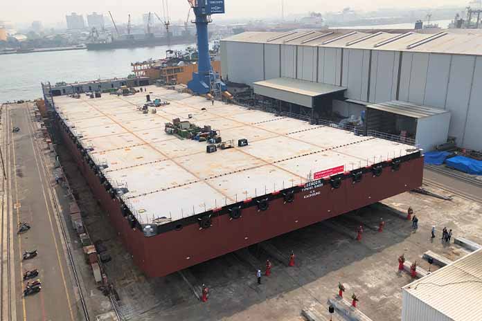 臺灣港務港勤股份有限公司新造140M非自航式平台駁船於高鼎新高廠測試。