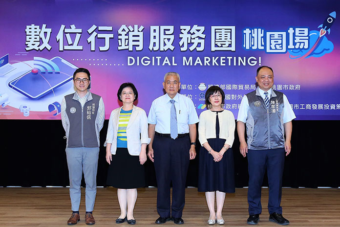 由經濟部國際貿易局主辦,外貿協會執行的12場次「數位行銷服務團」,今(8/20)日於桃園市政府正式辦理首場活動,吸引桃園地區主要進出口公會及產業公協會140多位廠商參加。