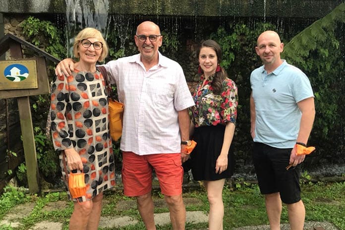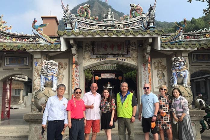 馬丁賀肯斯與李美潔12月14日除了體驗關子嶺獨有的黑泥漿溫泉及甕仔雞之外,也到訪國定三級古蹟火山碧雲寺,欣賞閩南式的廟宇建築及台南山區的秀麗景緻。