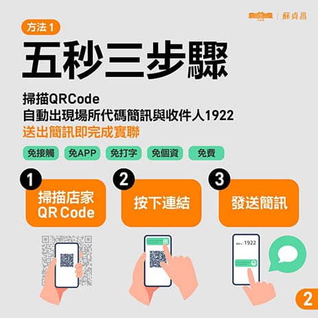 民眾使用這個簡訊服務完全免費、而簡訊紀錄由電信業者保留28天(兩個潛伏期)。甚至是沒有照相功能的手機,也能透過簡訊功能輸入店家碼,即可傳給「1922」完成實聯登記。