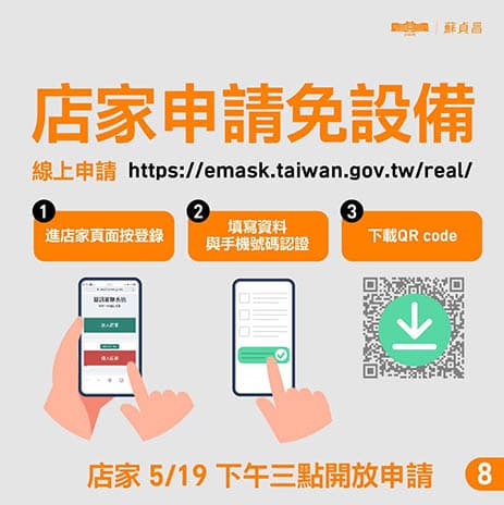 5月19日15:00起,就能線上申請登錄店家資訊,登錄完就能獲得QRcode讓客人掃描登記。
