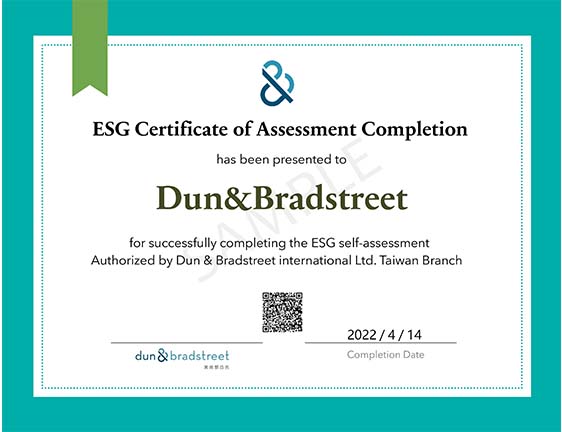 台灣經貿網為協助會員企業打入ESG國際供應鏈,與美商鄧白氏深度合作,提供會員企業以優惠價格取得「ESG認證」,以小成本起步檢視自身能進入ESG供應鏈的方法,通過認證後可取得「ESG自評證書」及「ESG自我評估報告書」,並可於台灣經貿網專屬網頁展示認證,更有機會藉助美商鄧白氏所擁有的全球最大商業數據資料庫揭露公司ESG指數,增加國際大型品牌商合作意願,方案詳情可參考網頁(https://events.taiwantrade.com/esg111)。