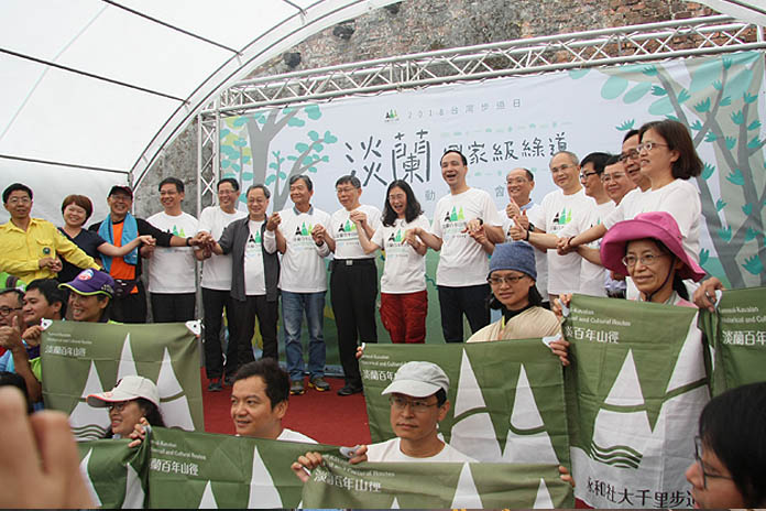 為了凸顯淡蘭百年山徑升級成為「淡蘭國家級綠道」的意義與願景,今日(6/2)記者會由中央及水土林相關部會的國發會、交通部、經濟部水利署、農委會林務局、農委會水保局、交通部觀光局東北角風景區管理處,及千里步道運動發起人小野、劉克襄等民間團體與公部門代表,以拼圖的方式呈現淡蘭國家級綠道路網全圖,並由台北市、基隆市、宜蘭縣及新北市等四縣市首長,在地圖上標示出路網上的重要節點,象徵國家級綠道將從地方出發,結合民間、地方政府及中央的合力支持,共同打造珍貴的全國綠道網絡。