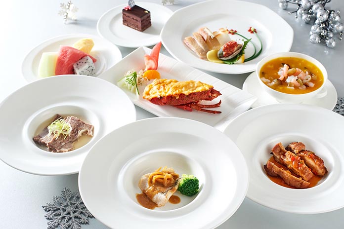 除了重金禮聘歌手帶來聽覺享受,各餐廳亦為本晚宴推出特別料理,菜色別具巧思。主菜與甜點加入名曲的新創概念,一方面增添神秘感,一方面帶給賓客們味覺與視覺全新的感官體驗。首先由珍珠坊、宴會廳共同獻上「德布西:海」,使用紅酒、松露、龍蝦等食材,完美交融中富有層次,如大海一般時而靜謐深遠,時而波濤洶湧。麗香苑與花園大道攜手演奏「貝多芬:第六號田園交響曲」展現歐陸風味,以法國羊肝蕈、雞油蕈與菲力牛排呈現流暢旋律。最後由日籍甜點總監嘉手納慶一首席製作「柴可夫斯基:糖衣仙子之舞」,耶誕限定的香緹星球與閃電馬卡龍入口時,每一口都是舌尖上綻放驚艷味蕾的童心趣味。