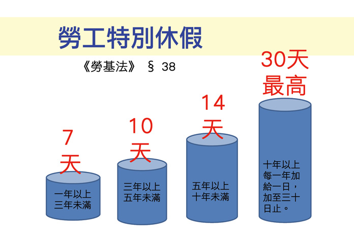 以上這一期勞動法報報,筆者特別講述有關勞動基準法第三十八條特別休假之規定,值得企業人事單位於勞務管理作業上之參考,亦有助勞工朋友於特別休假權益上之認知釐清,以維勞資合作之和諧。