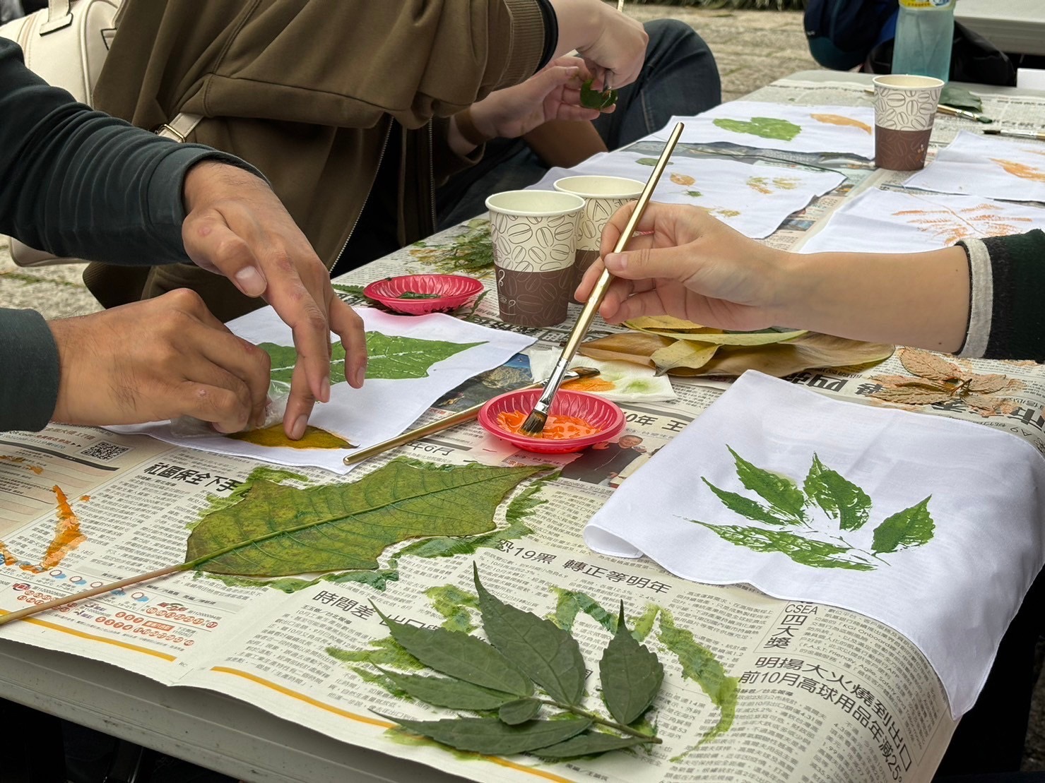 新竹縣政府今(26)日在峨眉獅山遊客中心舉辦「獅山走讀古道、植物染拓印DIY體驗活動」,現場近50組親子、閨密好友參加活動,場面相當熱絡,縣府結合搭乘台灣好行獅山線與結合自然、創意的植物拓染活動,期待讓更多旅客認識獅山線、周邊古道自然生態和人文歷史,親臨古道山林之美。