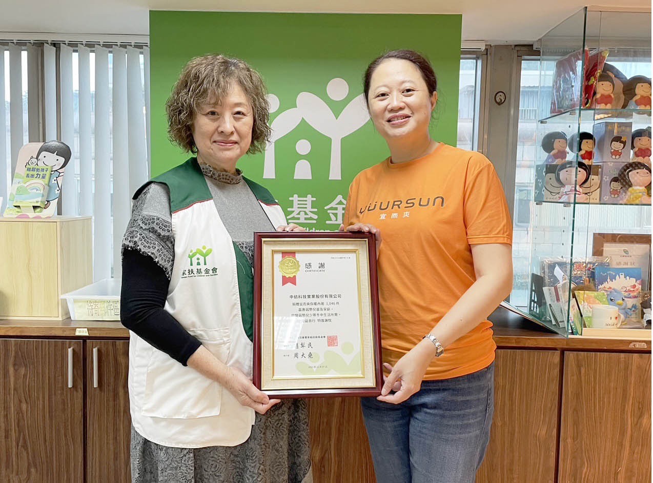 ▲家扶基金會收下宜而爽滿滿暖暖愛心並回贈感謝狀。 圖/宜而爽提供