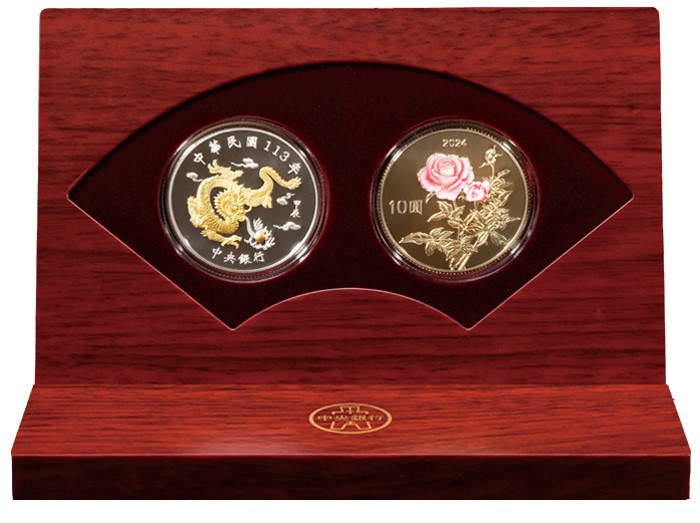 再過1個月、國人就要迎接農曆龍年到來,央行委請台灣銀行發售的「甲辰龍年生肖紀念套幣」週三(3日)在記者會中亮相,銀幣正面是以局部鍍金的「龍」圖騰為主題,背面是台灣陣藝文化「高雄內門宋江陣」;銅合金幣正面是以「祥龍戲珠」為主構圖,背面則為部分上彩的「玫瑰花」,有象徵愛情的意涵。