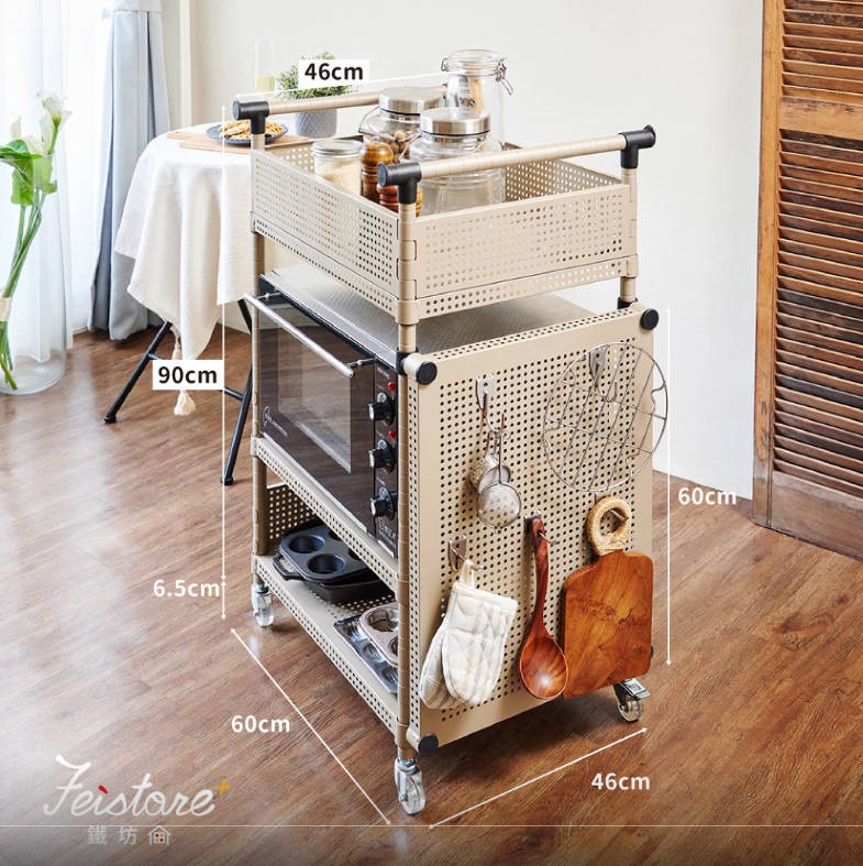 • 結構和設計:一些推車有可調整的架層、抽屜、洞洞掛板等其他功能,最好是選可以延伸配件使用的。