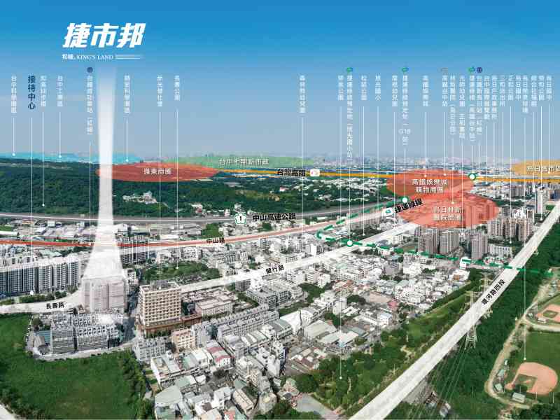 台中交通建設串聯各大產業園區和重劃區,促使商圈轉移與人口流動。台中高鐵站位處高鐵沿線中心點,南來北往非常方便,高雄、台北在60分鐘內都能到達,並且捷運綠線、台鐵在此共構,台74線、國道1號在此交匯,能快速通往台中、彰化各地。和峻建設千坪綠鑽聚落【捷市邦】,執掌台中高鐵特區、台74線交通樞紐,可以乘高鐵到竹科出差,也可以搭火車到彰化品嚐小吃,一推出即引爆購屋熱潮,成為台中房市關注焦點。