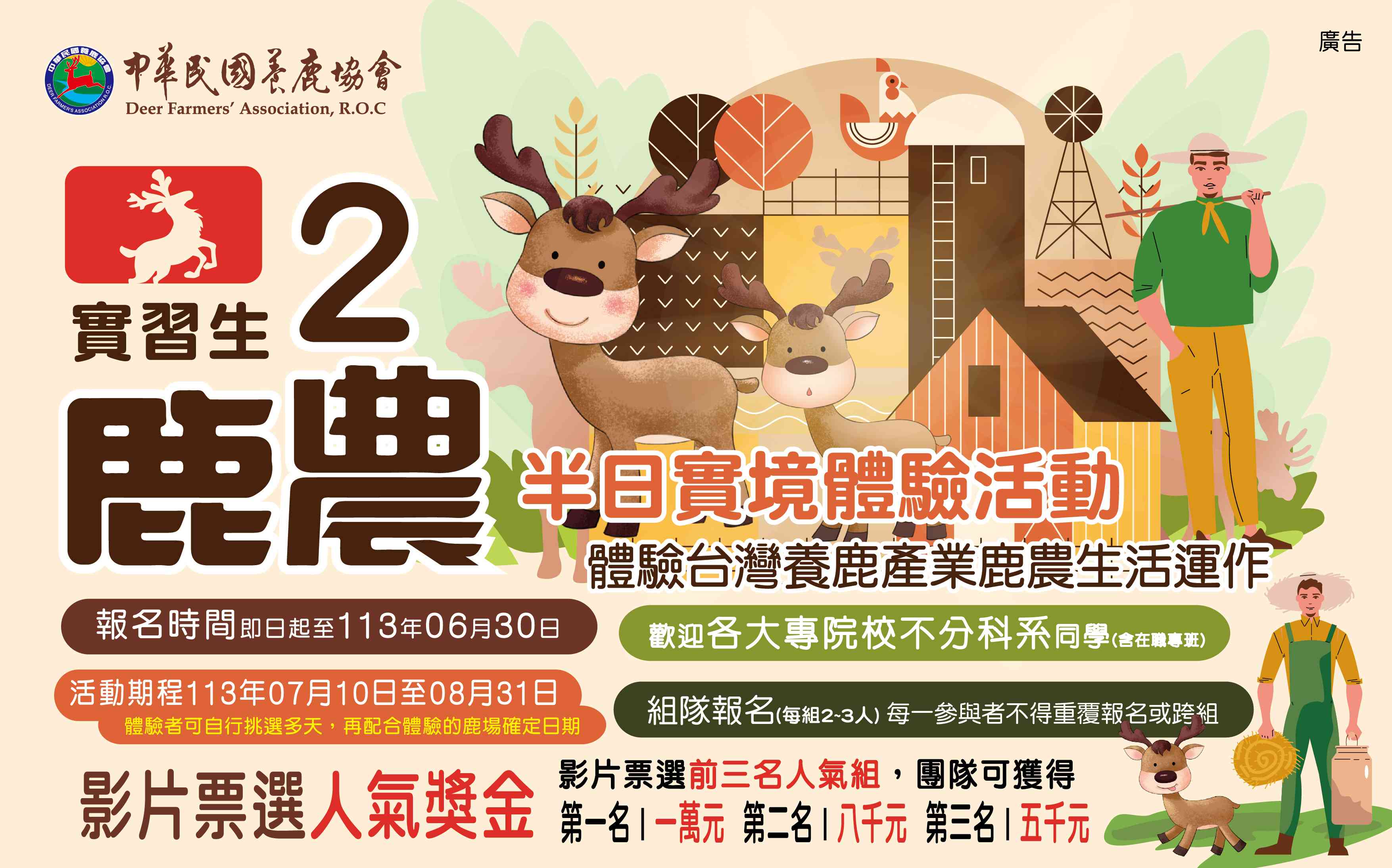 更多活動詳情可至中華民國養鹿協會2024鹿農實習生半日實境體驗營活動網站或中華民國養鹿協會官方臉書。