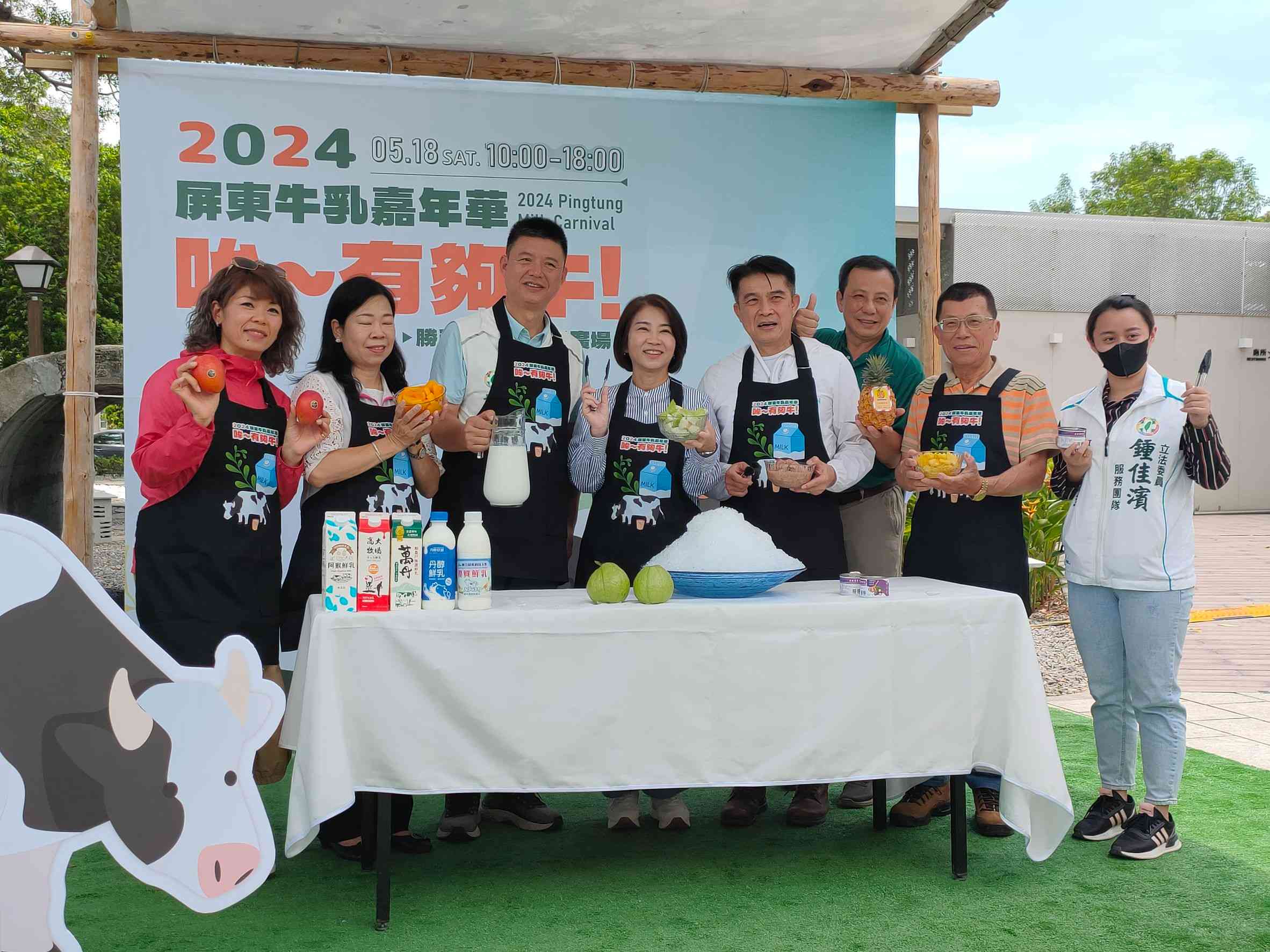 屏東縣政府將於今(18)日在勝利星村星星廣場舉辦「2024屏東牛乳嘉年華-哞~有夠牛」,邀請大家一同來享受這場融合吃、看、玩於一體的盛會,開幕儀式由縣長周春米及受邀民代、來賓共同啟動。