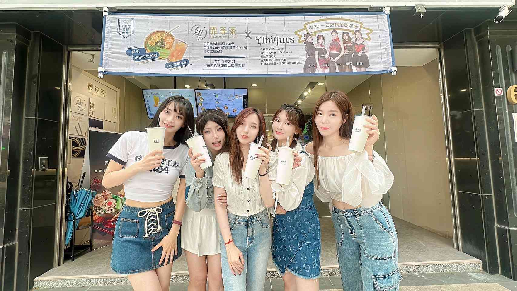 6/30(日)下午四點到六點,她們也會在林口A8分店擔任一日店長,只要消費滿150元,並追蹤Uniques及霏等茶的IG或臉書,即可參加一日店長抽獎活動,就有機會獲得Uniques 的限量簽名週邊商品喔。