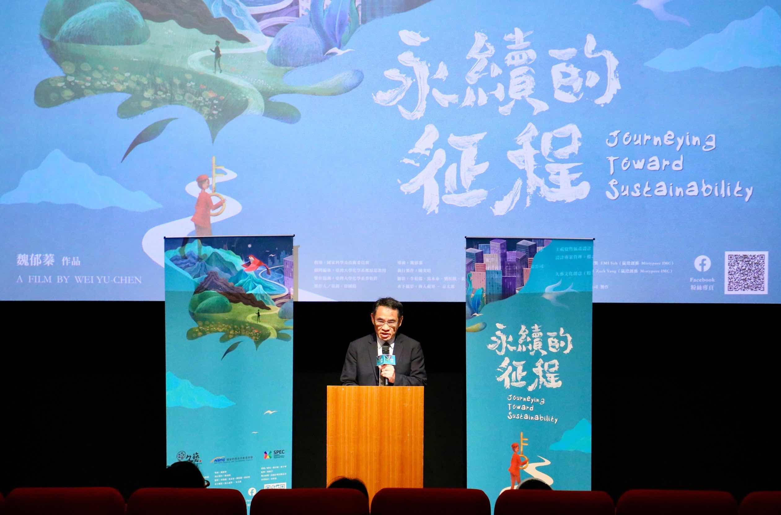 國科會政務副主任委員林法正表示表示:希望藉由科普影片,擴散台灣跨域科學家的熱情與研究,並接棒下一代邁向永續征程。主辦單位提供