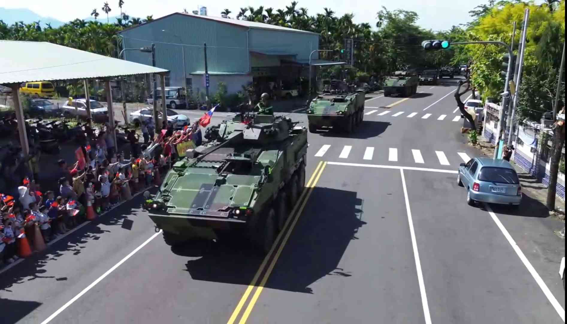 今年度國軍漢光40號演習今天凌晨正式展開,國軍各部隊接獲指令後陸續前往各戰術位置進行任務操演。今天上午,國軍第四作戰區機步第333旅接獲指令,出動多輛戰甲車前往戰術位置待命。浩浩蕩蕩的車隊出現在屏東內埔鄉街頭,路過一家幼兒園門口,200多名小朋友在馬路兩旁高舉國旗,為路過的國軍車隊為官兵打氣加油,國軍官兵也在車上比讚回應。