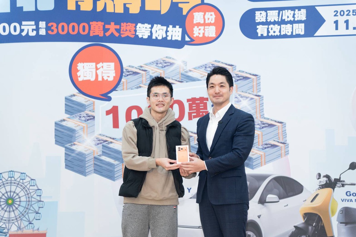 為響應行政院全民普發新臺幣1萬元政策,提振城市買氣、帶動商圈活力,臺北市政府推出「來台北有購嗨 消費歡樂抽」活動,就是要讓民眾邊遊台北邊中獎,抽好禮抽到手軟!本次記者會特別邀請第一週大獎iPhone 17 Pro得主蔡先生到場分享中獎小撇步,雲端發票綁定下去就對了!民眾只需要於活動官網首次登入時,勾選同意串接雲端發票,後續系統會將發票自動匯入參與抽獎,輕鬆參與「來台北有購嗨 消費歡樂抽」消費抽獎活動,不錯過任何一次與財神牽手的機會!