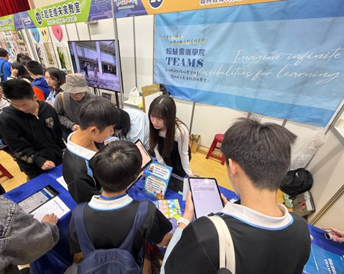 學生於翰林攤位踴躍體驗 TEAMS 系統,透過平板互動,親身感受數位學習的樂趣。(圖/翰林雲端學院提供)